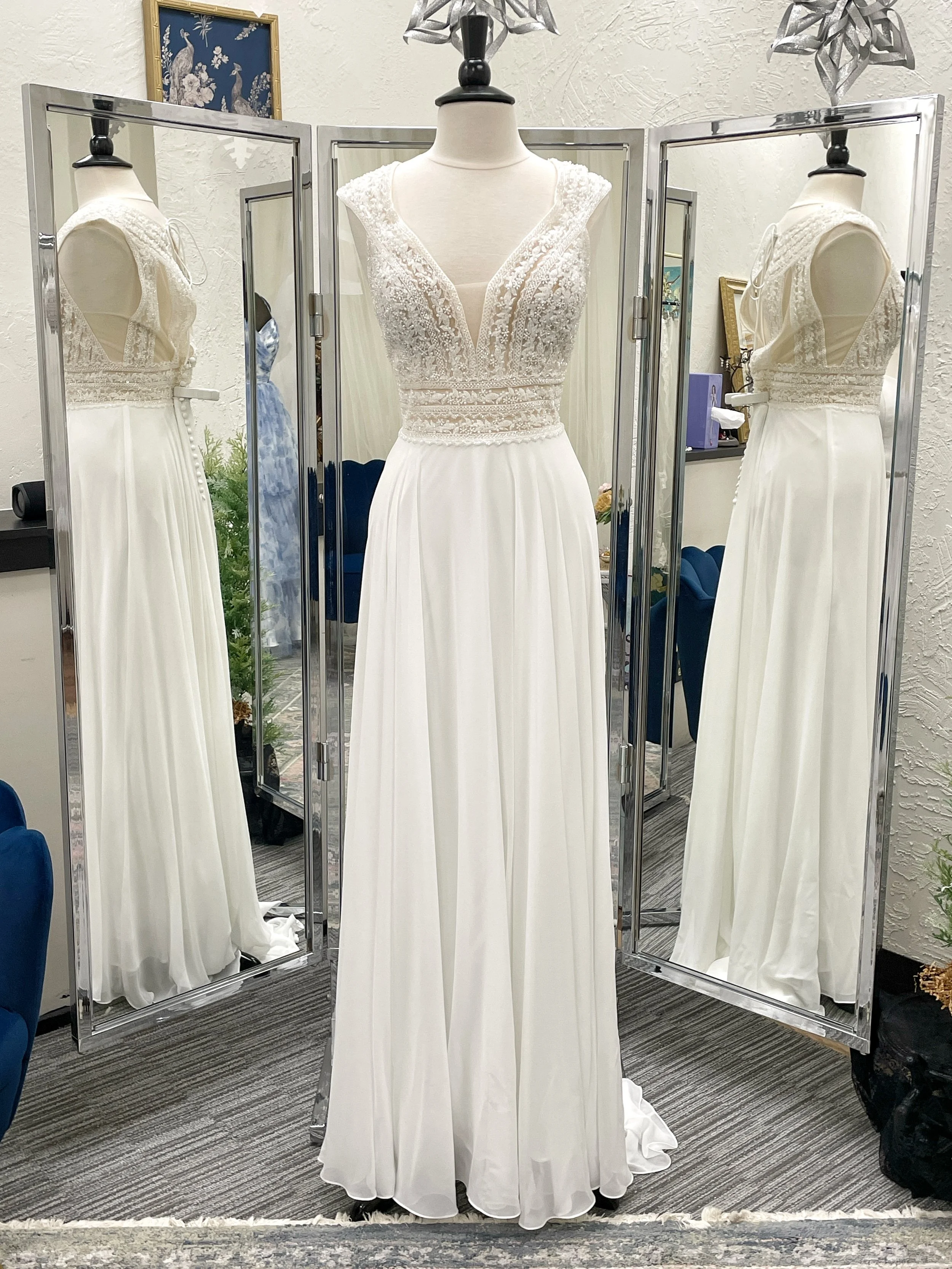 Size categories are reflective of your every day sizes and not of designer tag sizes, which vary by brand. Designer sizes are listed in the product information. When searching by size, consider that you can tailor a gown down a size or two in alterations, so be sure to look at gowns in a range of sizes! Once you click into the “wedding gown” category, you can sort by price or size. On mobile view you have to scroll to the right! You can also use the search bar below to search for specific brands, styles or keywords. Thank you!