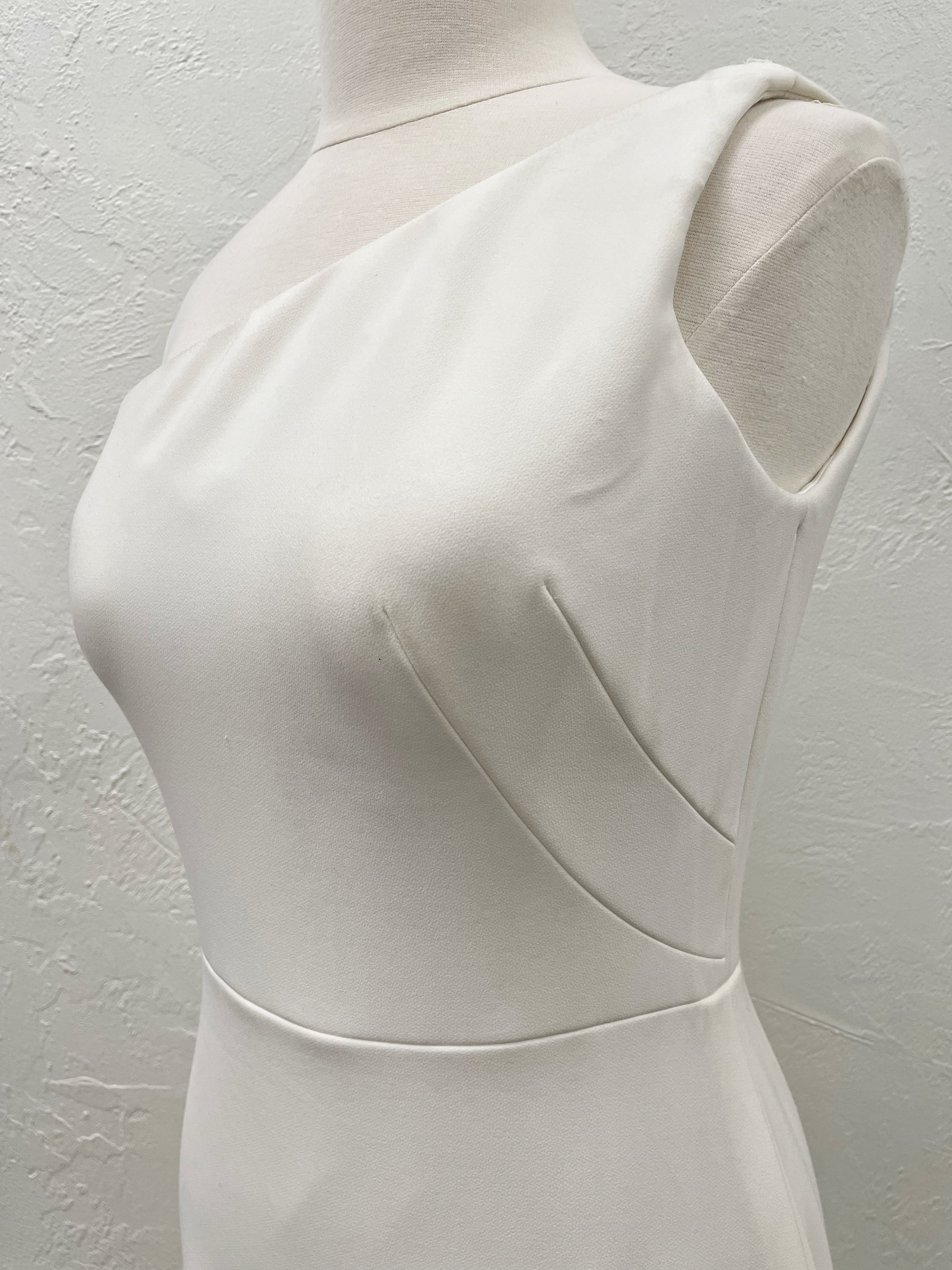 Modern and minimalist this ivory crepe sheath gown with a single shoulder strap showcases your décolletage and frames your face effortlessly.